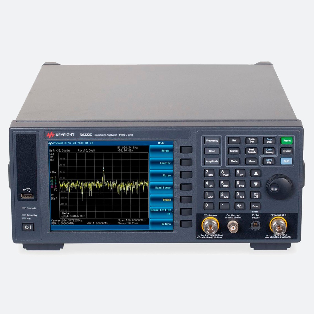 The Keysight N932xC spectrum analyzer is a portable, swept spectrum analyzer with a maximum frequency from 4.0 GHz(N9321C) up to 20 GHz(N9324C). It can be widely used in an electronic manufacturing environment and in functional/final/QA test systems.