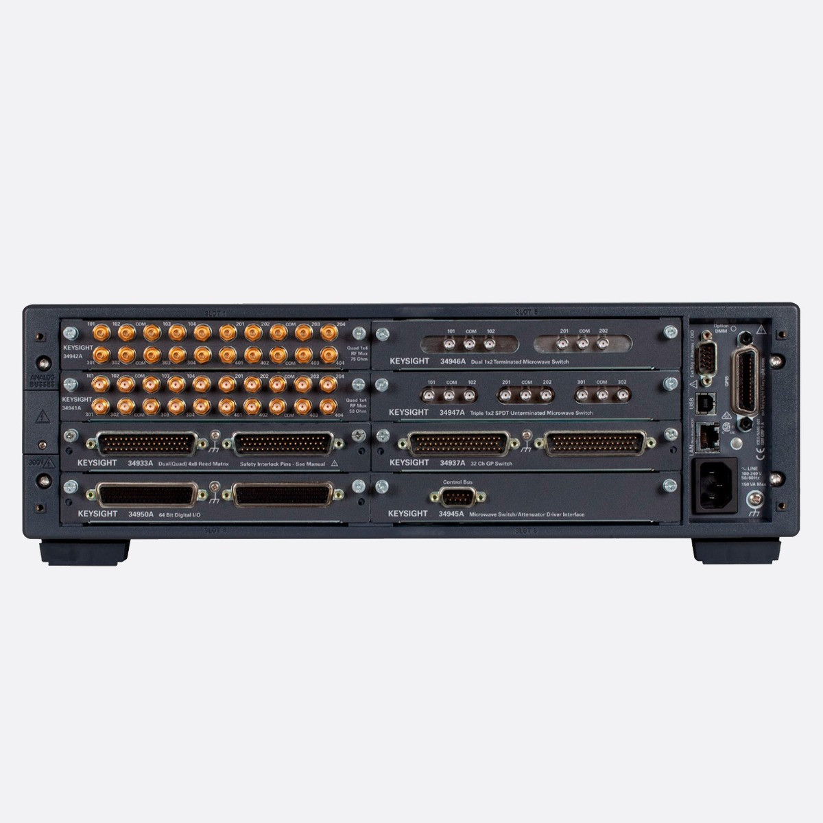 The Keysight 34980A Multifunction Switch/Measure unit is designed for R&D and manufacturing test engineers who are working in design verification, automated test or data acquisition and are either looking to upgrade their existing systems or are in need of a new, cost-effective alternative. The 34980A is an eight-slot mainframe that offers 19 plug-in modules and an optional 6 1/2 digit DMM. It is easy to integrate with standard LAN, USB and GPIB connectivity to PC, and is priced up to 40% less than comparable switching solutions.