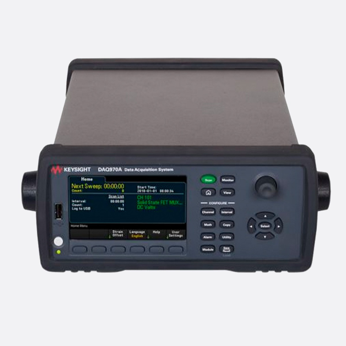 Get the next-generation data acquisition (DAQ) system with a 3-slot mainframe and your choice of 9 plug-in modules. Interface with the DAQ using Keysight BenchVue DAQ software, the intuitive graphical front panel with task oriented, self-guiding menus, or a web browser.
