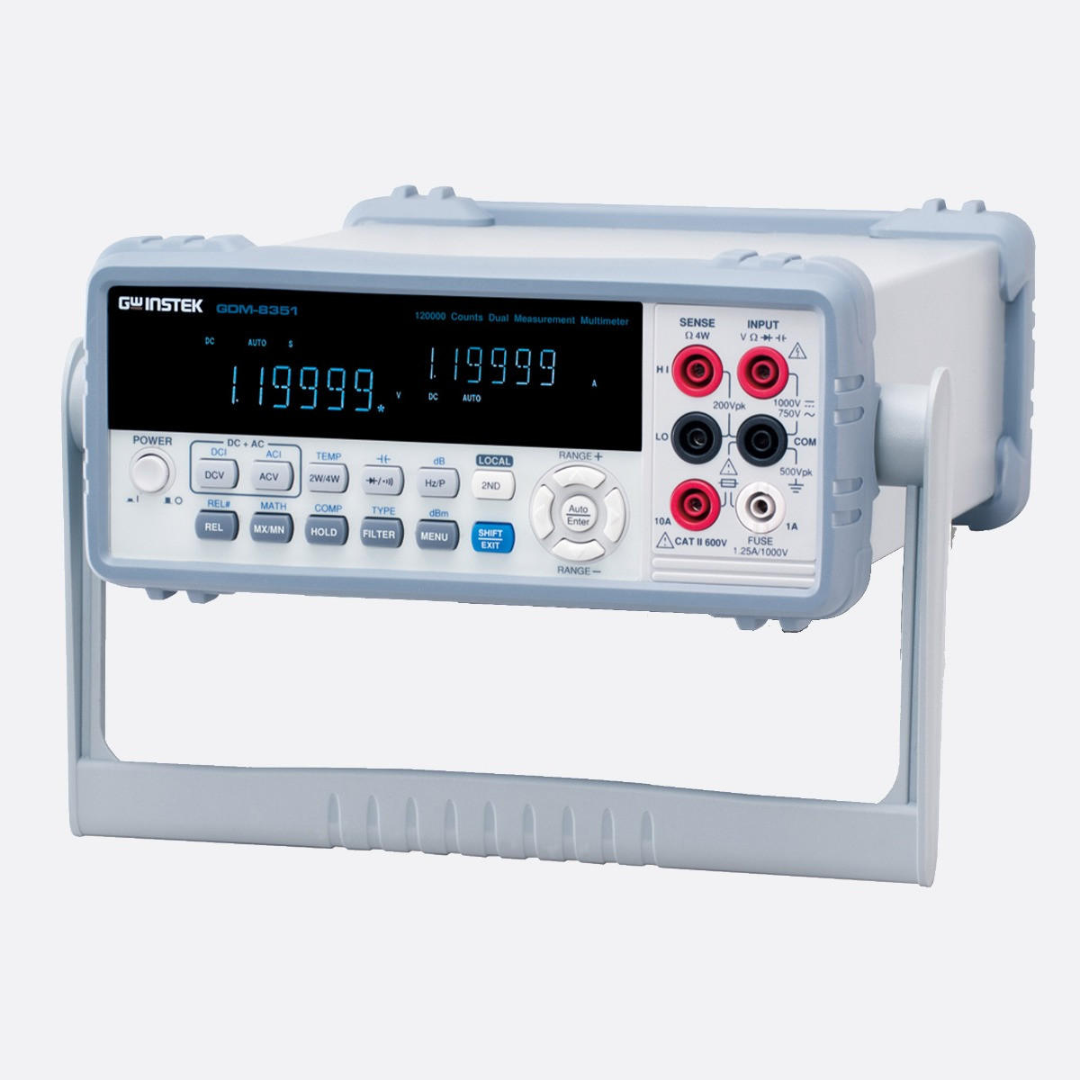 GW Instek presents the brand new 5½ Digit Dual Measurement Multimeter ─ GDM-8351 to replace GDM-8251A of the same category. GDM-8351 features VFD dual-display, maximum 120,000 counts, 0.012% basic DC voltage accuracy and USB/RS232C connectors to provide users with measurement precision, lucid data observation, and the convenient connection with the personal computer.