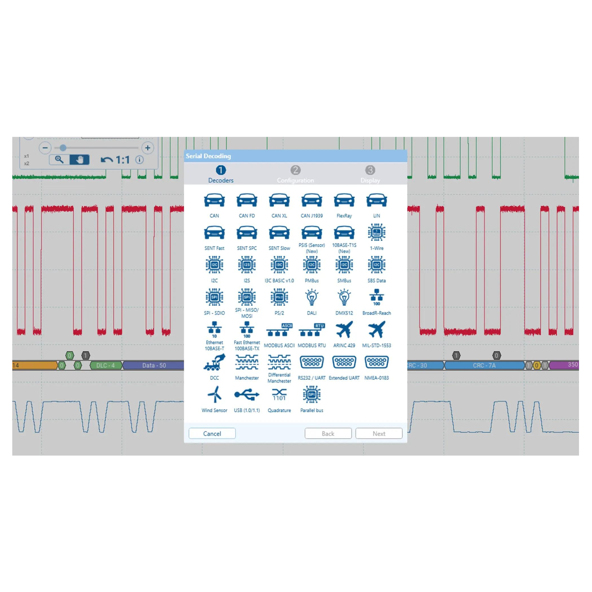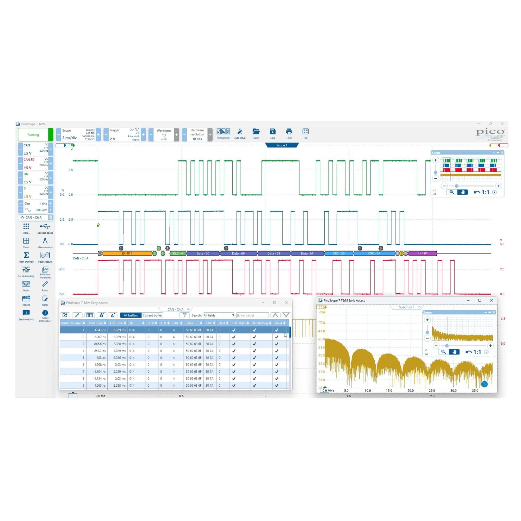 More advanced tools such as serial decoding and DeepMeasureTM work to analyze data packets or events across all waveform buffers in the deep memory, making the PicoScope 3000E Series some of the most capable oscilloscopes on the market.