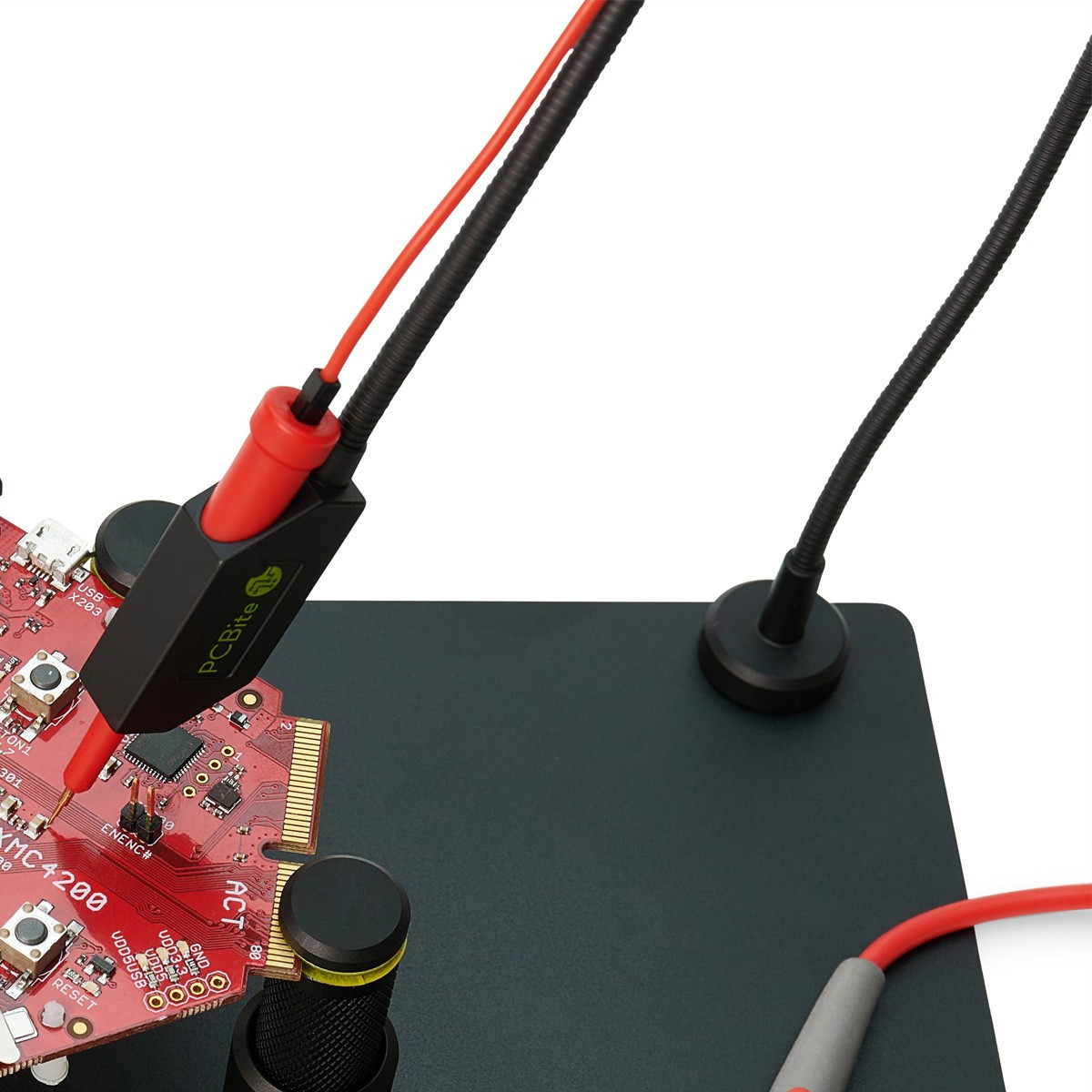 The probe holder comes with a powerful magnet in the base, as for all PCBite probes and holders which makes the probe easy to place and reposition.